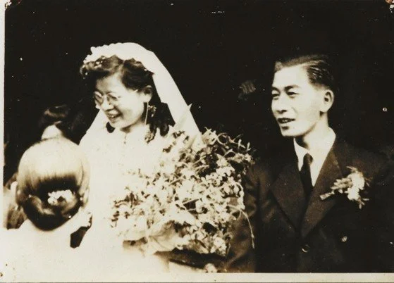 My parents’ wedding officiated by Bishop Gilman of Hua Chung (May 1945)